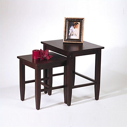 -. Feature : 2 Piece Espresso Nesting Tables. Solid wood frame construction. Beautiful Espresso finish on select veneers and solids. / Large Overall Size: 20"W x 16"D x 21"H, Small Overall Size: 15.5"W x 14.5"D x 17.5"H, 2 Piece Nesting Tables. / Provides a space saving solution for extra surface area. Distinctive multi-step finish process. / Color: Espresso. Outer Materials: Solid Wood / Veneer. Assembled Dimensions: 16"D x 20"W x 21.25"H / Assembled Net Weight: 21 lbs. Weight Capacity: 25 lbs. Warranty: OSPD. Country Of Origin: VNM.