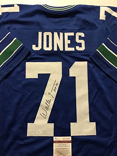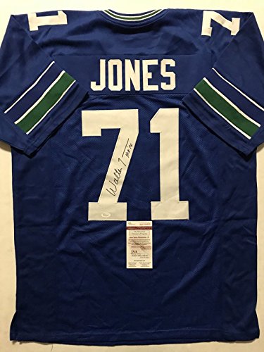 Autographed/Signed Walter Jones "HOF 14" Seattle Seahawks Blue Football Jersey JSA COA