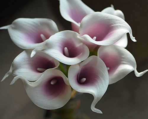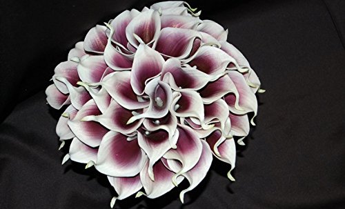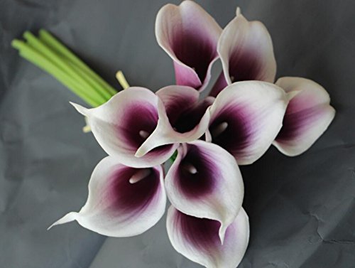 14" Real Touch Latex Picasso Calla lily bunch artificial spring flowers for home decor, wedding bouquets, and centerpieces (18 PCS) (Purple/White)