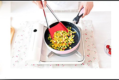✔ SUPERIOR AND PROFESSIONAL QUALITY: Our kitchen spatula and tongs are the essential cooking accessories for home or commercial kitchens. The stainless steel frame is sturdy enough and you will never worry that it would be broken easily. They are perfect for scooping as well as clipping.