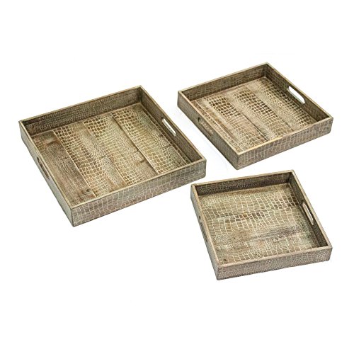 S/3 Wood Trays, 16" x 16" x 2.75", Brown