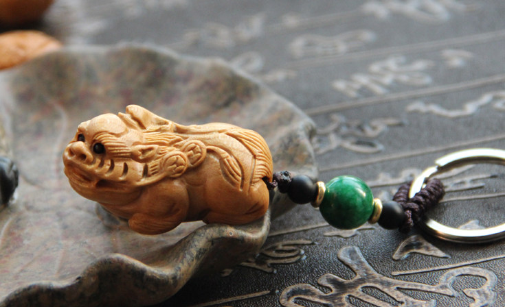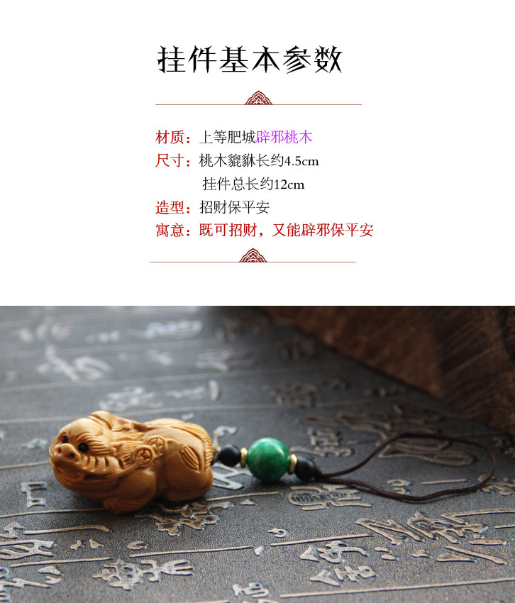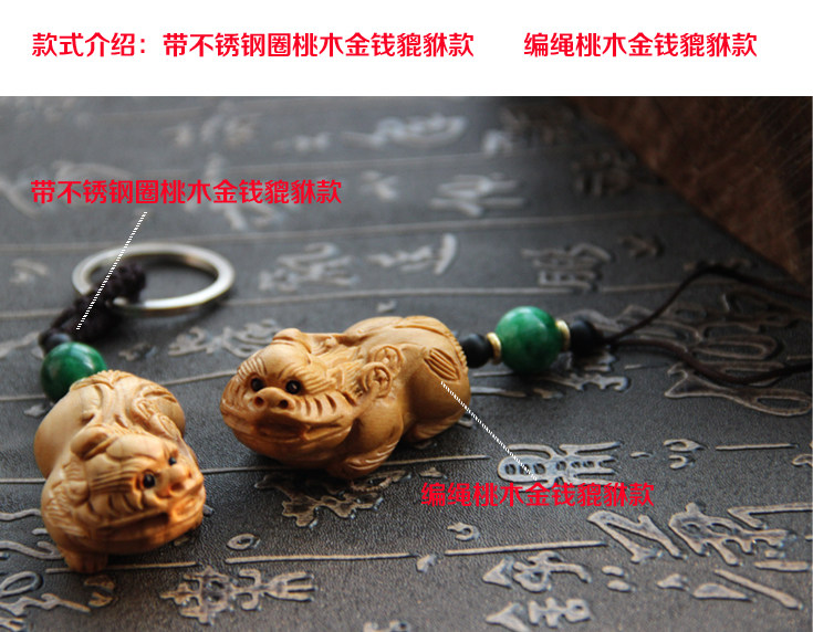 汽车钥匙挂件 挂饰 钥匙扣 桃木 貔貅 腰挂 辟邪保平安 招财