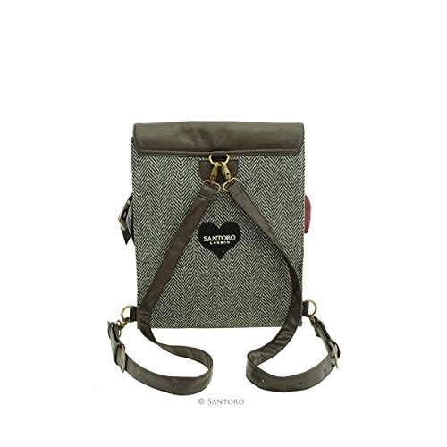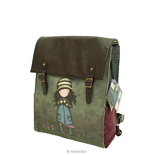 Gorjuss Rucksack - Fliegenpilze. Eine attraktive und zugleich praktische Rucksack mit den Gorjuss Fliegenpilze Kunstwerk. Die quadratische Form des Rucksacks macht es attraktiv mit einem einzigartigen Bild große Fliegenpilze auf der Vorderseite, mit einem dunkelbraunen Schließplatte mit zwei Magnetschließen. Der Tasche öffnen, um die Clips Gorjuss gestreiftes Innenfutter, eine nützliche Tasche mit ißverschluss, einen elastischen Schlüsselhaken und eine Handytasche zu offenbaren. Die Rückseite der Tasche ist dunkel Hintergrund mit Fischgräten Santoros Logo in einem kleinen Herz, und einem verstellbaren Riemen in dunkelbraun. Die Gurte können angepasst werden, um die Tasche kann entweder als Rucksack oder Umhängetasche getragen werden! Ca. Größe: 28cm breit, 38cm hoch und 10cm tief. Material: Gedruckt Material: 100% Baumwolle, mit Fischgrätenmuster: 80% Polyester 20% Wolle, Handgriffe 100% Polyurethan, Futter 90% Polyester 10% BaumwolleFeature