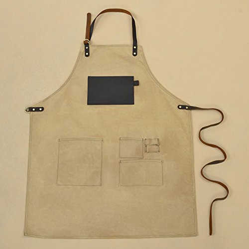 - QUALITY MATERIAL: Waxed canvas & leather, 16 OZ performance fabric ensures the apron durable enough to take daily work.