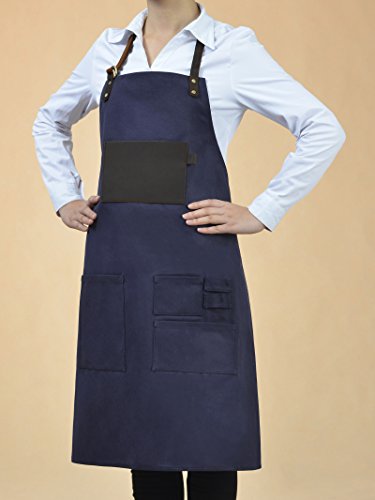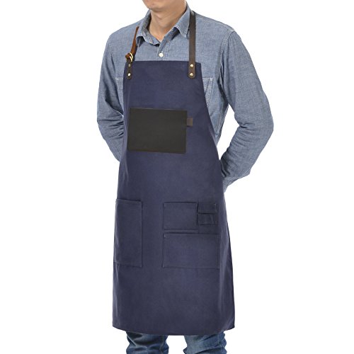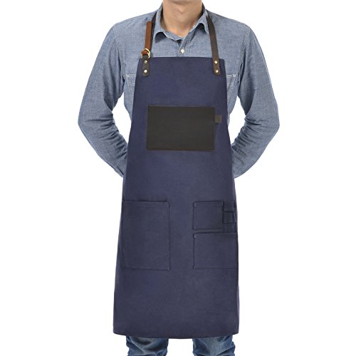 VEEYOO Heavy Duty Waxed Canvas Utility Apron with Pockets, Adjustable Shop Apron for Men and Women, Navy, 27x34 inches