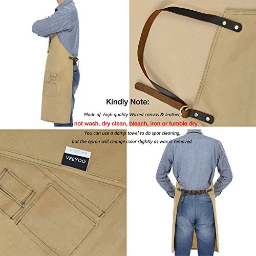 - EASY TO CARE: The apron is waxed, so please do not wash, dry clean, bleach, iron or tumble dry. You can use a damp towel to do spot cleaning, but the apron will change color slightly as wax is removed.