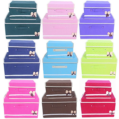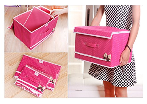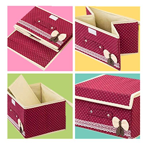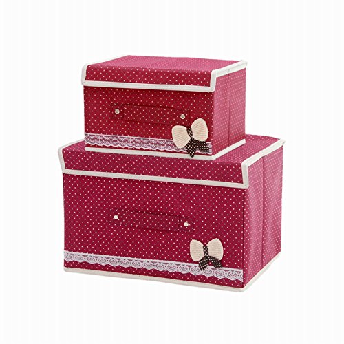Foldable Storage Containers With Lids, Storage Cube Basket Set of 2, Polka Dot Storage Canbinet (Wine Red)