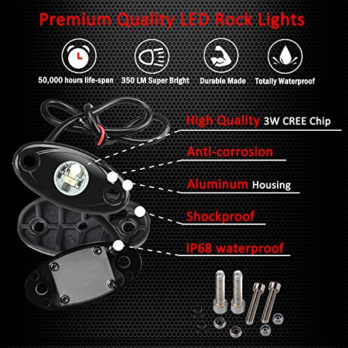 High Quality: die-cast aluminum housing 2 pods (3 chips every pod) CREE chips (3W every chip), PC lens reinforced, IP 68 waterproof, 50000 hrs life span, could work at all conditions.