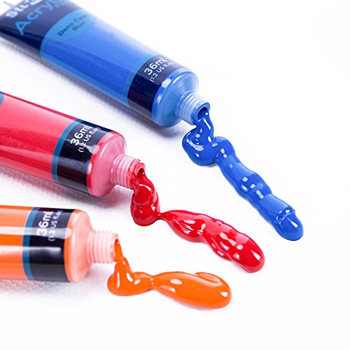 AMAZING VERSATILITY - The advanced formula ensures that our acrylics glide on smoothly. All paints can be used on most mediums of different textures including canvas panels, paper, fabrics, ceramics, clay, metals and wood.