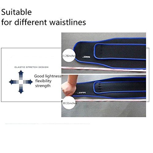 -. Feature : The SPANDEX16%+84%NYLON material that the belt is made of repels moisture and intensifies sweating. At the same time, it fits perfectly around the waist. There's no risk of the belt bunching or lifting up during the exercise. This is possible because of the specialized lining. / The waist trimmer features a double-stitched trim, construction made from soft and latex-free neoprene, textured grid interior and contoured design. The belt is lightweight and flexible. You're not going to feel it during the workout and you can go very hard without being restricted. / The most important ones include sweat repelling interior, anti-bacterial core that prevents the belt from getting a bad odor,perforated SBR LYCRA,breathable and comfortable / Double pressure straps: you can adjust the pressure by yourself / Attenion: No Bleach No dry-clean Wash under 30 degrees Celsius Hanging and drying