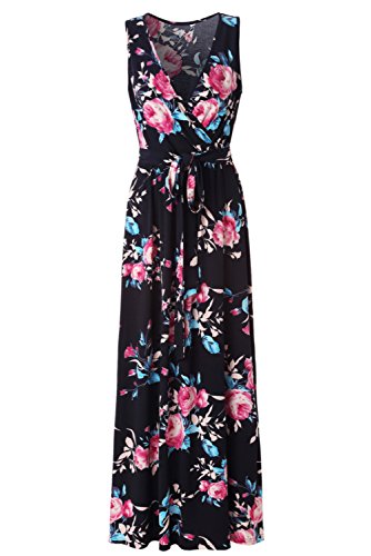 Features:Womens dresses features a sexy crossover v neckline,sleeveless top and elastic in the waist for a comfortable fit. A line summer maxi dress with long flowy skirt, super flattering! This long dress will skim the ground for height of 5'5". Perfect maxi long dress to wear with flats and sandals,great for summer beach vocation!