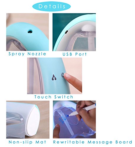 【Unique Design】- Message board design makes you can leave important or lovely messages on the smooth tank by using matched fluorescent pen (pen is in the package). Rainbow appearance makes the humidifier more lovely and attractive.