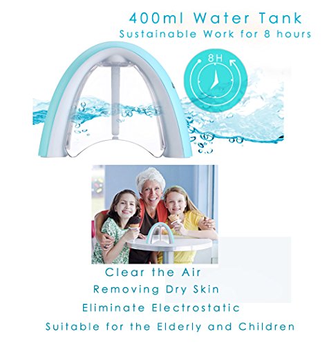 "【Whisper-Quiet Operation ﹠Large capacity】- Offer cold mist and super quiet operation which guarantee do not disturb you through work or rest. Huge 400ml capacity can be used continuously up to 8 hours, fill it up with water can be used about 12 hours. "