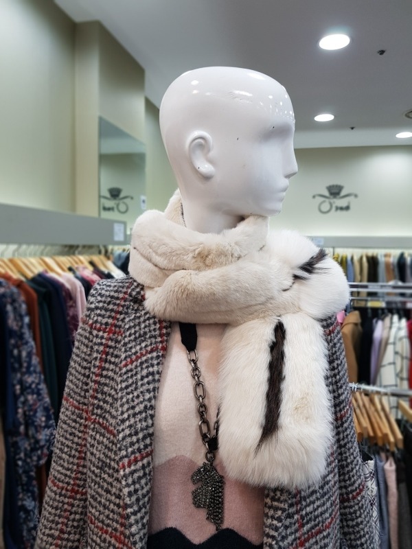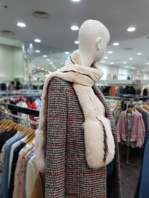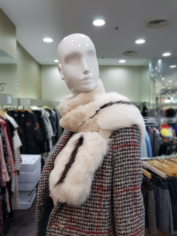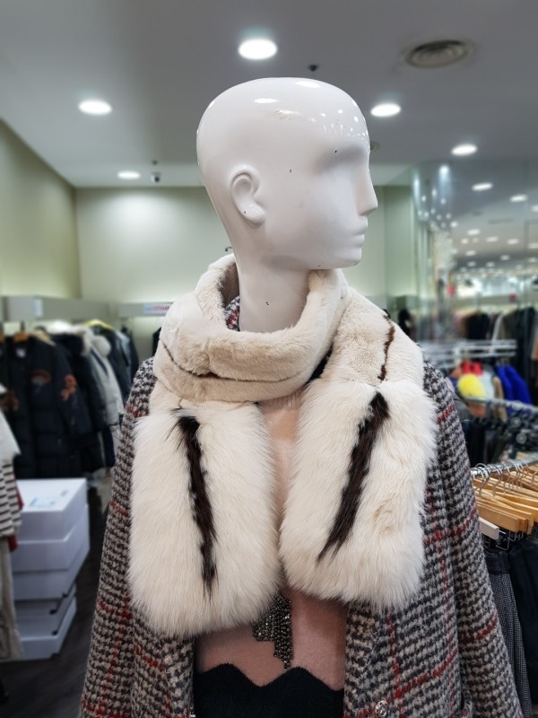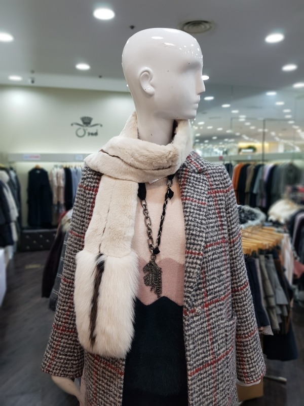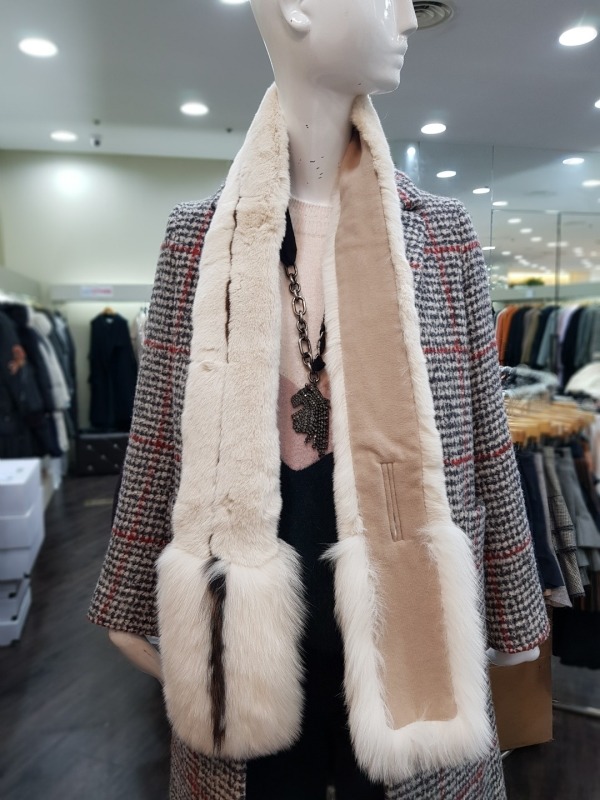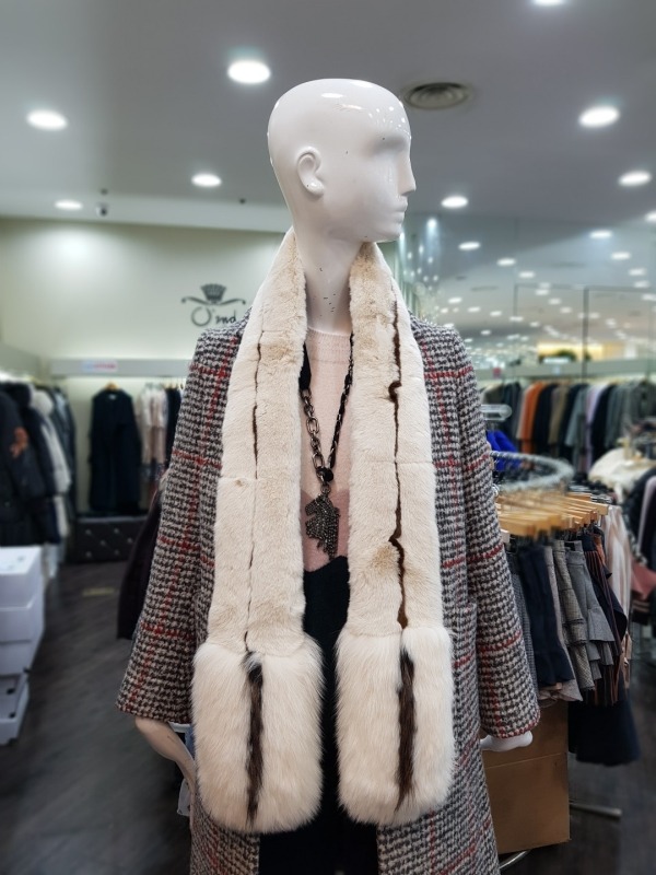 총장165cm 로 긴부분은 토끼털, 밑에는 여우털로 구성되었으며 고리구멍이 있어 다양하게 연출이 가능한 아이템입니다.