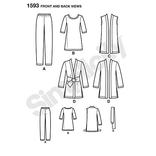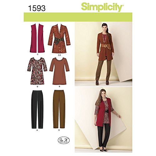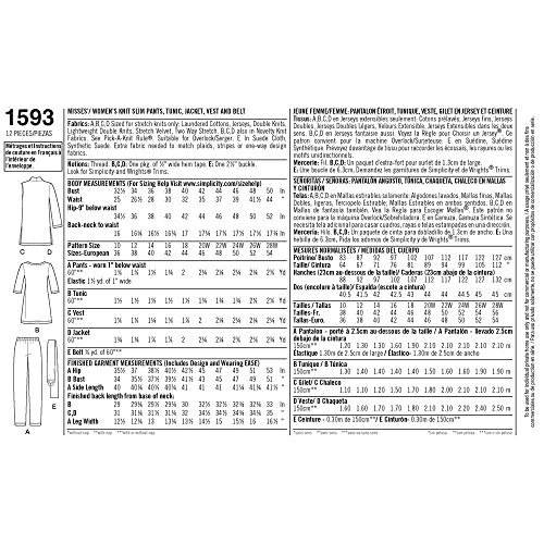 Simplicity Pattern 1593 Misses Knit Slim Pants, Tunic, Jacket, Vest, Belt Size 10-12-14-16-18
