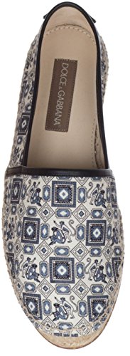 Binding : Apparel Product Description Dolce Gabbana Men's Monkey Print Espadrille Loafers Slip-On Shoes Ivory, blue, black and white canvas monkey print espadrilles Leather Sole and Insole Dolce Gabbana?embossed insole Braided raffia sole 100% Leather trim and logo at heel Made in Spain