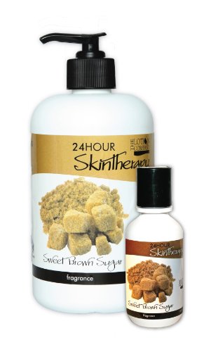 The Lotion Company's 24-Hour Skin Therapy is a remarkable blend of ingredients selected to contribute to both health and beauty. These products are carefully handcrafted in modest-sized kettles, not mass-produced in giant vats. The resulting blend is uncommonly easy to apply and absorbs quickly, leaving your skin soft and silky all day. Enriched with aloe vera, macadamia nut oil and sesame seed oil, 24-Hour Skin Therapy offers immediate relief for dry, itchy, scaly skin anywhere on your body. Essential vitamins and minerals help calm, nourish, and rehydrate your skin. Glycerin provides additional moisturizing without the greasy residue that petrolatum-based lotions leave behind. Very popular in the healthcare community, 24-Hour Skin Therapy is gentle enough for sensitive skin and doesn't irritate cracked, chapped skin. The aroma of Sweet Brown Sugar full-body moisturizer is a wonderfully warm and sweet confection of brown sugar, maple, and smooth caramel. There are twelve light, pleasant scents to choose from: Baby Powder, Citrus Tea, Dahlia Blossom, Fresh Breeze, Free & Clear (fragrance free), Kiwi Mango, Spring Cherry, Sweet Brown Sugar, Vanilla Bean, Vanilla Bean with Bronzer, Sweet Pea, and Lavender Field. Nothing is smoother. Nothing is finer. Your skin will tell the difference!Feature