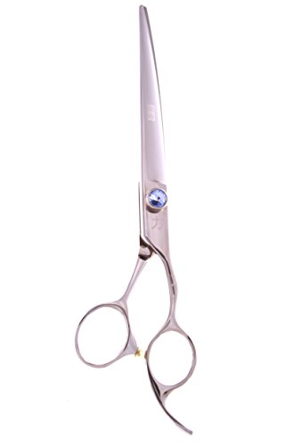 ShearsDirect Japanese 440C Curved Cutting Shears with Light Blue Gem Stone Tension and Anatomic...