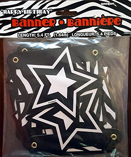 -. Feature : Zebra P.R.Int Plastic Table Cover 54 in x 108 in - P.R.Inted zebra all over / Zebra P.R.Int paper plates- 10 count, 9 in diameter and Zebra P.R.Int beverage napkins 20 count 2 ply 10 x 10 inches / Zebra P.R.Int treat bags with twist ties - 20 pieces 5 x 11.5 inches and Zebra P.R.Int invitations - 8 count with envelopes / Black and white "Happy Birthday" banner - 5.4 feet in length / Black, white and silver confetti - 1.2 ounces- contains stars, party hats, hooray! signs. Perfect to spread on your party table and in gift bags!