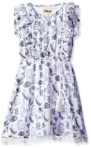 Disney D-Signed Big Girls' Alice in Wonderland Print Dress, White/Grey, M
