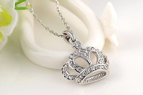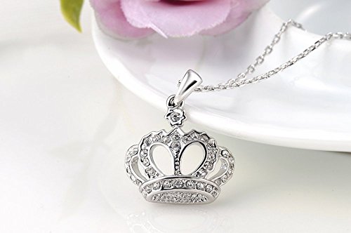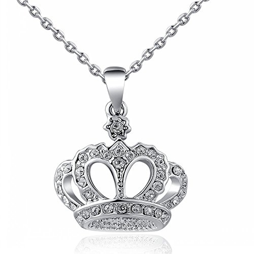 Sparkling 18K rose gold/platinum plated necklace featuring crown styled pendant.