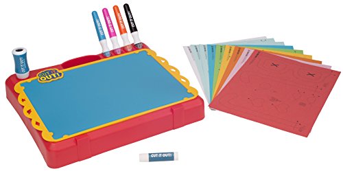 -. Feature : Unique Cut It Out Markers Both Color And Cut / Easy And Safe For Any Child Artist To Use / Design Studio Comes With Book Of Colored Paper For Multicolored Creations / Cut It Out Offers A New Way To Make Paper Arts And Crafts / Set Includes: 4 Cut It Out Markers, 1 Easy Cut Holder, Plastic Design Studio with storage, Paper, Design Guide
