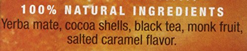-. Feature : Case of 6 boxes each containing 18 tea bags (total of 108 tea bags) / Ingredients: yerba mate, cocoa shells, black tea, monk fruit, natural salted caramel flavor / Steeping Instructions: 3-5 minutes at 190-205F / Caffeinated: Yes / Unique blend of yerba mate, black tea, cocoa shells, and naturally sweet monk fruit / Perfectly balanced with natural salted caramel flavor / Irresistible dessert tea / Add a splash of milk and a bit of sugar for a rich and creamy guilt-free treat / Blended in the USA with natural ingredients from around the world.