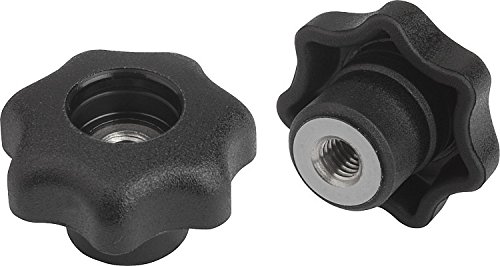Kipp 06212-5A2 Black Thermoplastic/Stainless Steel Tapped through Hole Star Grip without Cap, 1/4-20" Internal Thread, Style D, Inch, 32 mm Diameter (Pack of 10)