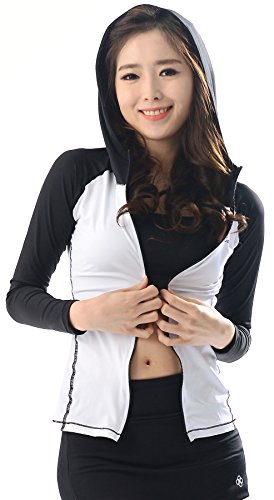 -. Binding : Misc. -. Brand : JustOneStyle -. Color : Black White -. Department : womens -. Feature : Soft and Stretchy fabric / Great for Swimwear / Features Soft Stretchy Fabric for a Comfy and Breathable feeling / Fade Resistent, Quick Drying, High Stretch Capacity / Keeps Your Skin Looking Beautiful and Young With Our Protection Technology -. PackageQuantity : 1 -. ProductGroup : Apparel -. ProductTypeName : SWIMWEAR -. Title : New A0325 Rash Guard Women Long Sleeve Hood Zip-up Top Summer Sports Swimwear