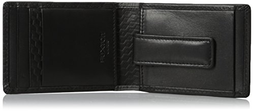 Studio : Buxton Men's Furnishings Publisher : Buxton Men's Furnishings Binding : Apparel Product Description Genuine satin cowhide leather with embossed pattern, striped fabric lining, satin nickel and rfid blocking material bellamy collection rfid front pocket flip wallet features 4 credit card pockets, i. D. Window, 2 slip pockets and a magnetic money clip. 0