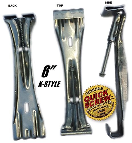 Quick Screw 6" inch Aluminum Hidden Rain Gutter Bracket Hook clip style Hangers with pre inserted 3" long ¼" hex head self drilling screw (25 Per Package)