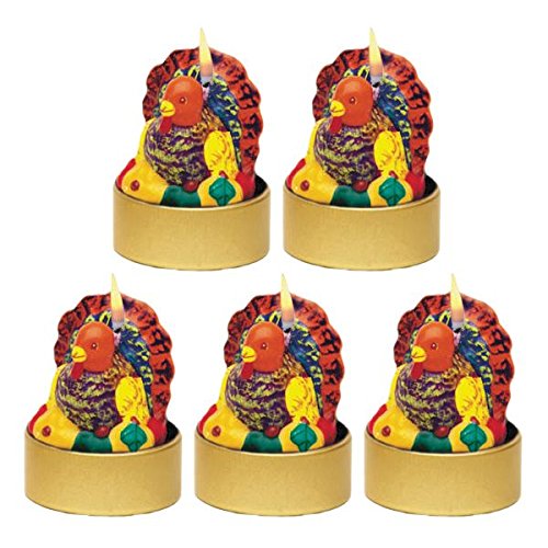 Amscan Festive Fall Thanksgiving Party Mini Molded Turkey Votive Candles Decoration, Multicolor, 1 3/4"