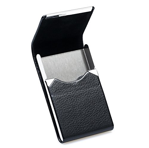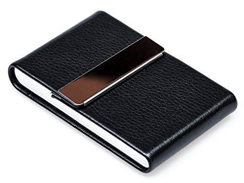Professional leather card case : business card wallet is soft-touch PU leather . Curved design for comfortable wrist grip. Inside steel holder protects your cards fromand scratches.PU leather with magnetic strip provides durable magnetic force, snaps on easily when closed . Packaging Includes: 1*Business card holder 0 |