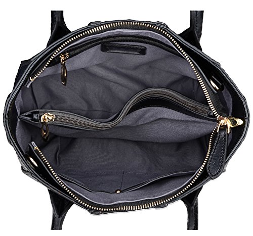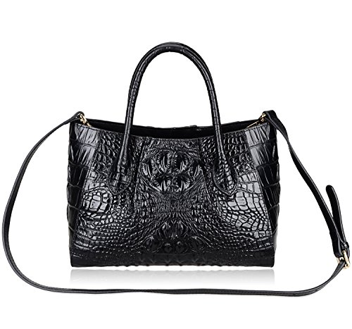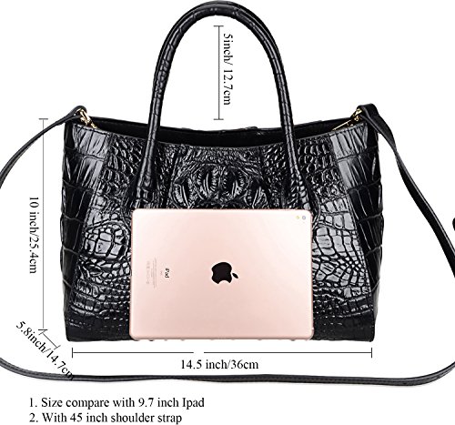 -. Feature : Creative Embossed Crocodile Technology: Import wax oil leather (100% genuine leather) with creative embossed technology , Wax oil leather is one of the high-end leather in the world, Embossed crocodile pattern in the original wax oil leather surface under high temperature, beautiful,luxury, elegant; / Stereotype bag Design: Front, back side with inside material make the bag become fixed. Practical and elegant, no matter from which point of view, it presents a very perfect solid line and graceful shape, protect handbag not be out of shape. / Dimensions: L- 14.5 x H- 10 x W- 5.8 inch(36cm *25.4cm *14.7cm); handle high 5 inch/12.7cm , with 47 inch/120cm length removable shoulder straps;Top zipper closure; fabric lining; Bottom with golden metal rivet protective; / Practical Inside Structure Design: Zipper open to a large storage, a middle zipper pockets for separate,1 zipper pockets in one side, and 2 open pockets in another side. / Fit up to 13" Laptop, can fit A4 file, mobile phone, wallets,up to 12.9 " Ipad, umbrella, etc; design to as leather tote, shoulder,top handle, Prefect for work, business, casual ,daily life, party, travel, etc Best Holiday Gift for Birthday, Mother's Day, Thanksgiving Day, Women's day, Christmas, New Year etc