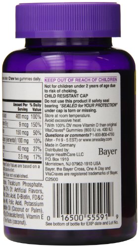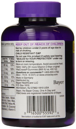 -. Binding : Health and Beauty -. Brand : One-A-Day -. Feature : Finally, there's a complete multivitamin designed for women that comes in a fun-to-take gummy / One A Day Women's VitaCraves Gummies provides women with nutritional support their bodies may need like Vitamin D and Calcium which help address health concerns important to women like bone health / This statement has not been evaluated by the Food and Drug Administration / This product is not intended to diagnose, treat, cure, or prevent any disease -. Label : One-A-Day -. Manufacturer : One-A-Day -. ProductGroup : Health and Beauty -. ProductTypeName : HEALTH_PERSONAL_CARE -. Publisher : One-A-Day -. Studio : One-A-Day -. Title : One A Day Women's Vitacraves, 70 Count Finally, there's a complete multivitamin designed for women that comes in a fun-to-take gummy. One A Day Women's VitaCraves Gummies provides women with nutritional support their bodies may need like Vitamin D and Calcium which help address health concerns important to women like bone health. This statement has not been evaluated by the Food and Drug Administration. This product is not intended to diagnose, treat, cure, or prevent any disease.