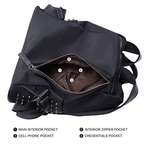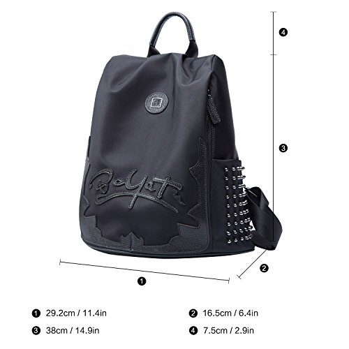 -. Feature : Top grain cowhide leather with high quality Nylon,not easy to scratch,Polyester lining.Fashion Rivets on the sideways,full of youthful vitality.Same stitching matches the same color of purse. / Famous brand,original design,handmade by professional artisans.Punk style,The Embroidery pattern is bee,it is Elegant and Fashion.Fit for traveling,working,dating,shopping.This fashion backpack will make you feel free and cool. / Soft back and top handle,zipper closure with leather drawstring,2 sideways pockets. Large capacity:(L)13.3" * (H) 13.7" * (W) 6.6"inch Light Weight:1.36 pounds. A 4 magazine and iPad can be easily contained. / Contain 1 generous pockets and 1 wall zippered pocket,Have phone and credential slots,1 back pocket with zipper closure,Portable and designed for the safety of your properties.Easily carry your laptop,mobile phone,wallet,cosmetic,IPAD,umbrella and other daily essential things. / Zipper closure with long shoulder handle. This Shoulder bag with buckle fastening adjustable shoulder strap and can be changed to be used as:Backpack,Messenger bag,Shoulder Bag,Sling Bag or a Hobo.The straps are very comfortable and sturdy,can be last long time.