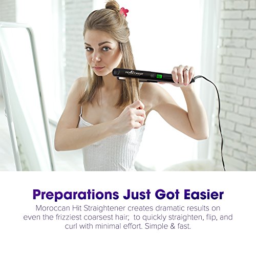 Moroccan Hit 1-Inch Titanium Ceramic Flat Iron Hair Straightener with Variable Temp and LCD Display