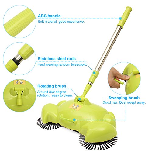-. Title : Automatic Hand Push Sweeper, LuckyFine 360 Rotary Automatic Broom Floor Dust Cleaning Sweeper Household Cleaner Mop Tool Green