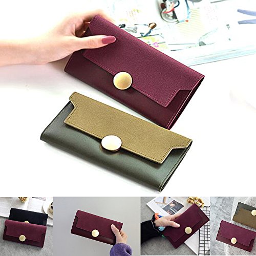 Specification: Material: Matte Leather with High qualityGold-tone Hardware Color:Black,Green,Brown,Purple,Grey. Wallets Type: Clutch Wallets Gender: Women Style: Fashion Closure:Buckle Pattern Type: Solid Structure:5 card slot pockets, 1 photo slot , 2 bills slots.1 coin pouch. Dimensions: ( L*W*H )18 cm x 9.3 cm x 2 cm (7.08inches x 3.66inches x 0.78inches) Package Contents: 1 x Slim Wallet