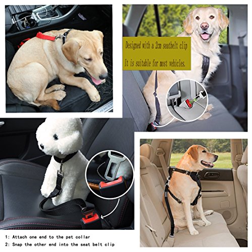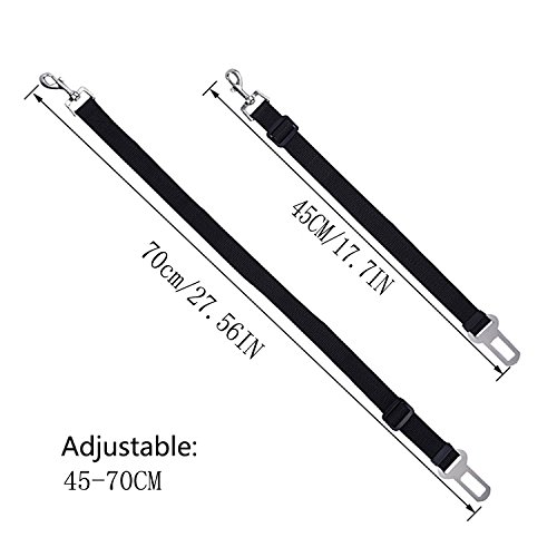 -. Feature : No Distractions: Help furry family member sit,stand or lie down comfortably and safely in when you are driving.Ideal for pets during travels. / Wide Compatibility:Designed with a 2cm seatbelt clip,it is compatible with most vehicles (not compatible with Volvo). / Adjustability: The length of seat belt for preference with simple pull adjustment for 16-26inch (42-68cm) in length. / High Quality:Made of nylon fabric to ensure safety,and the solid zinc alloy swivel snap and metal buckles guarantee extra durability! / 100% Money Back Guarantee:We will send your money back if you don't like it or any problem with it.