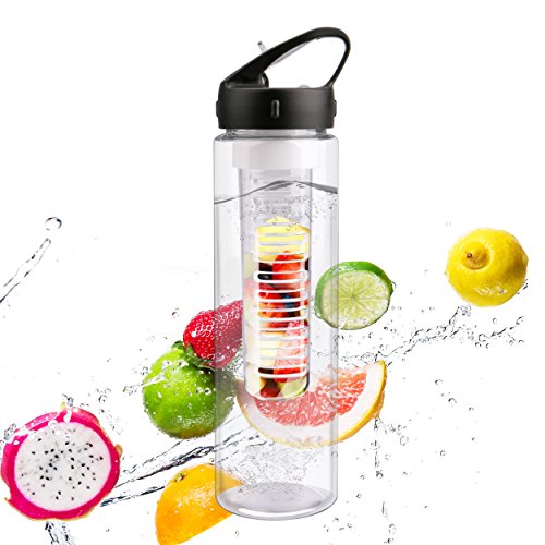-. Feature : ♀.Ezire water bottle are Leak-proof and drop resistant BPA free Plastic / ♀.The water bottle is high strength and wear resistance. The heat resistance is between minus 60°C and 120°C / ♀.Reusable and carbonated water-friendly. Whatever your taste, You can choose Strawberries, raspberries, apples, cucumbers, oranges, lemons, limes. Enjoy the taste and health benefits of naturally flavored water / ♀.The Drinking bottle is easy to use and the removable fruit infuser compartment is easy to clean. / ♀.Capacity: 0.7L (700ml) with fruit infuser. Product Weight:6.5oz Color:Black