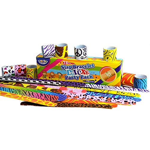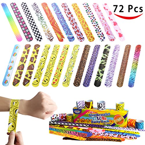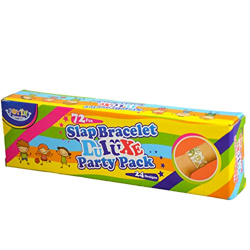Comes in a pack of 72 assorted plastic vinyl bracelets.