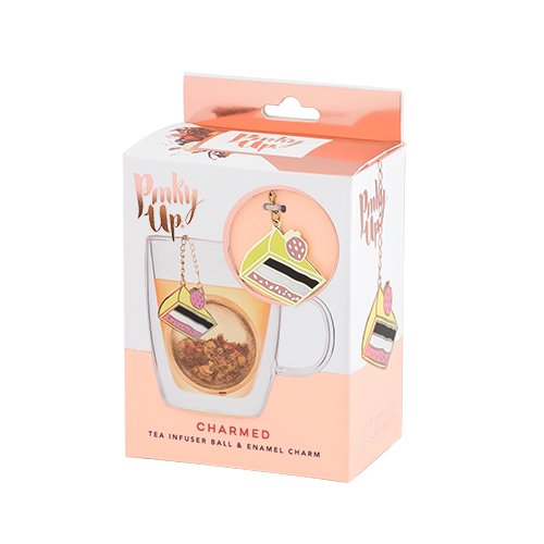 Studio : Pinky Up Publisher : Pinky Up Binding : Kitchen Product Description Keeping your tea ball chain from falling in your cup is a piece of cake with the charmed tea ball. The enamel charm not only decorates your cup, but provides a counterweight to your infuser!. 0