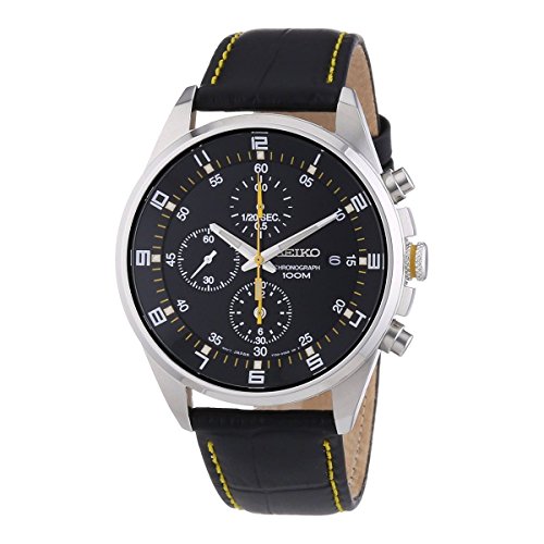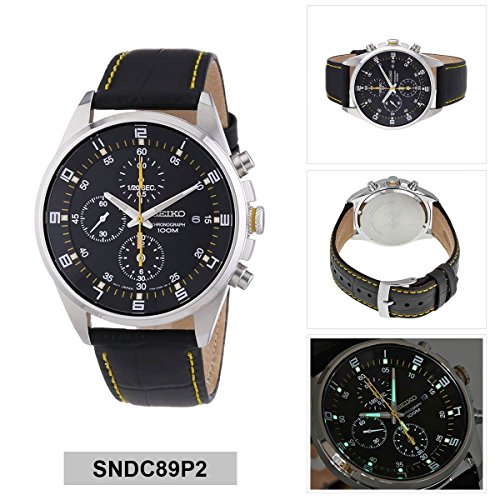 Seiko - SNDC89P2 - Men's Watch - Quartz Chronograph - Black Dial - Black Leather Strap