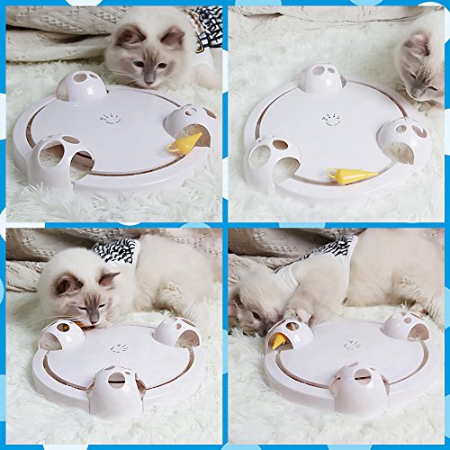 -. Feature : The electric cat mouse game disc is placed on the floor or table, press the switch, the mouse will be yellow irregular circles move, in the tunnel back and forth to hide, to stimulate the natural instinct of the cat / This product has four sections of variable speed mode, 360 degrees non directional rotating design. Open the power supply inside the mouse will round disc round, let a cat fondle admiringly. / Four variable speed shift designs: slow, medium, fast and random. / The mouse and disk body of electric cat mouse game disc are made of environmentally friendly ABS material, safe and environmentally friendly. At the top of the cat scratch board design, sharpen my claws can help. / Power Supply Mode: Battery (This product does not contain batteries, please bring your own batteries.)