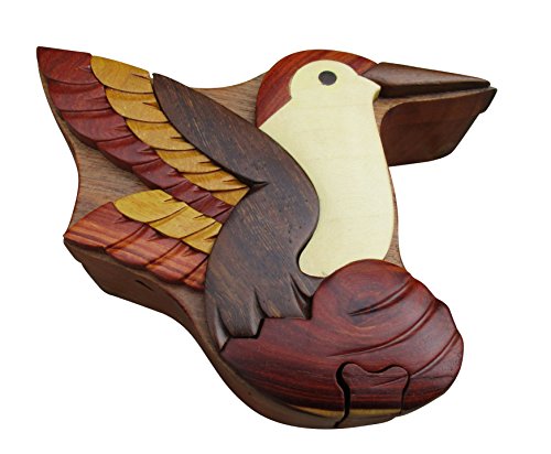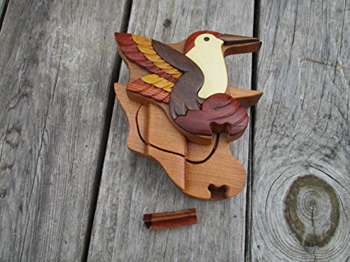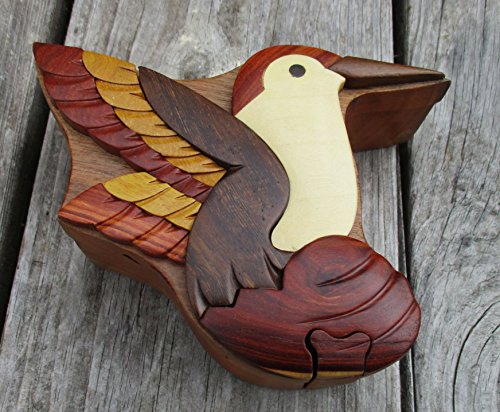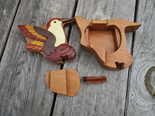 Hummingbird Handmade Carved Wood Intarsia Puzzle Box
