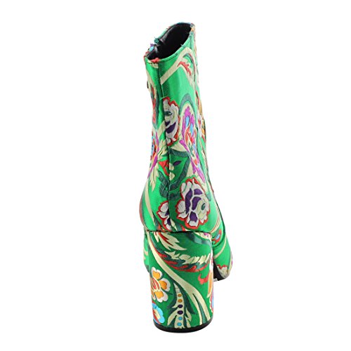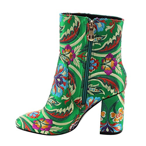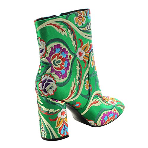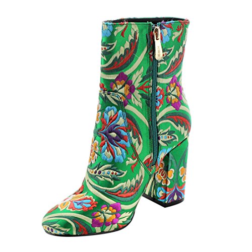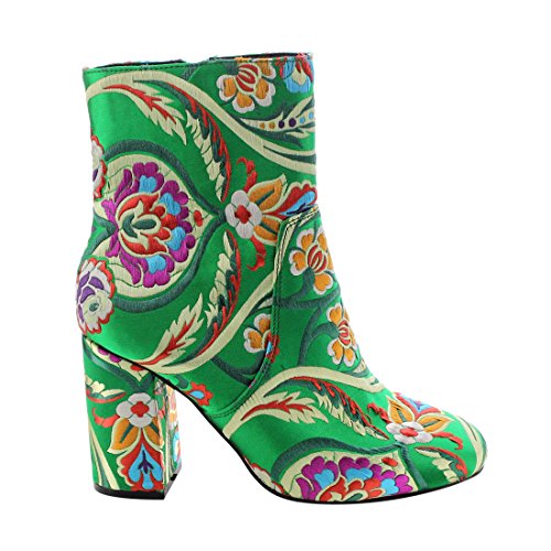 X2B FJ59 Women's Chunky High Heel Floral Embroidery Ankle Booties