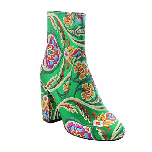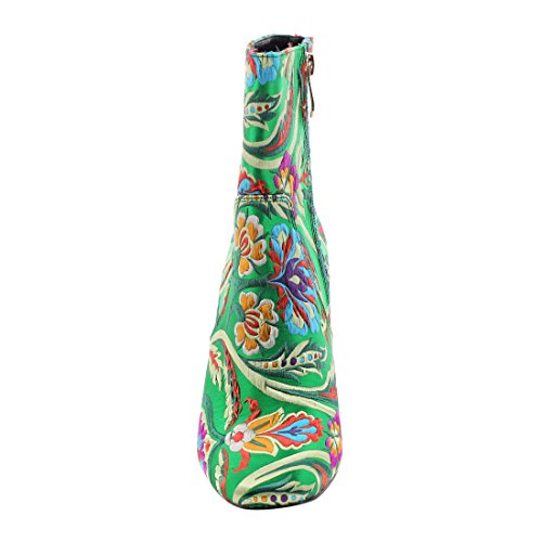 Product DescriptionHits the town in these women's chunky high heel floral embroidery ankle booties.Designed with wrapped heel,side zipper,stiching details.0