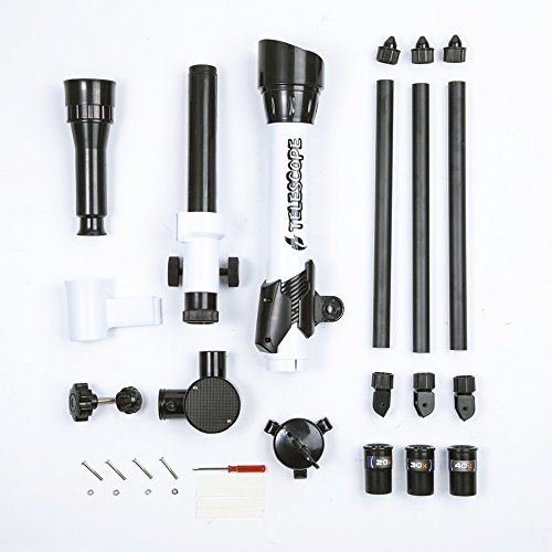 Studio : Xshop Publisher : Xshop Binding : Toy Product Description ★ To explore the mysterious nature and space with the telescope! ★ This nature exploration toy is capable of catching the image of stars and planets. The easy-to-use telescope is one of the best choices to introduce your kids to the wanderful and mysterious space. HOW AMAZING IS IT! ★ A DIY telescope! Allow your kids to assemble their own telescope! ★ This discovery kids telescope is great for looking at the MOON. It's easy to get the look of MAIN LUNAR CRATERS and DISTINCTIVE FEATURES OF LUNAR SURFACE. ★ Observing birds and animals in a distance with the children telescope is easy, interesting and joyful. About DIY Telescope ? Three different magnification Eyepieces: 20X, 30X, 40X ? Objective: objective diameter 60mm ? Focus adjustor: Focuse Length 170mm ? Lens cover eyepiece cover ? Tripod, ratatable angle:360#176 ? Finder finder holder ? Drawtube ? Reflector ? View angle adjustor ? This telescope is super light-weight. AGE 8 ? Tested according to international standards. 0