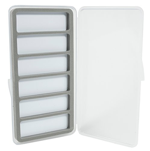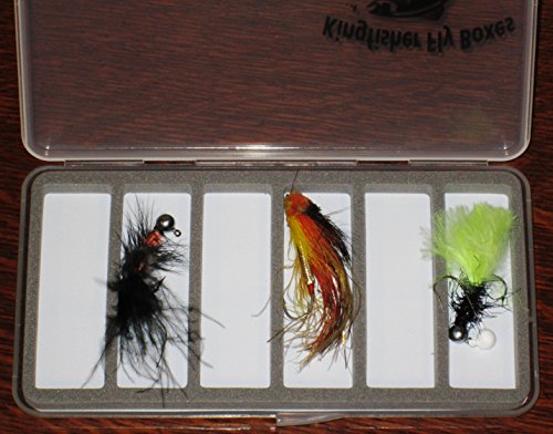 -. Binding : Misc. -. Brand : Kingfisher -. Color : Clear with Gray Liner -. EAN : 0768284314236 -. Feature : Made from tough clarified polypropylene / Super thin yet holds enough flies to keep you covered / Magnetic backer to keep flies from being lost in the wind / Snap tight lid with strong hinge -. IsAutographed : 0 -. IsMemorabilia : 0 -. Label : New Phase Inc -. Manufacturer : New Phase Inc -. PackageQuantity : 1 -. ProductGroup : Sports -. ProductTypeName : SPORTING_GOODS -. Publisher : New Phase Inc -. Studio : New Phase Inc -. Title : Ulta Slim 6 Compartment Magnetic Back Fly Box -. UPC : 768284314236